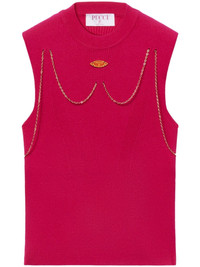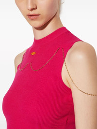 chain-embellished rib-knit top Highlights - Pink - Chain-link detailing - Logo plaque - Ribbed knit - Round neck - Sleeveless - Straight hem Made in Italy Composition Viscose 70%, Polyester 30%