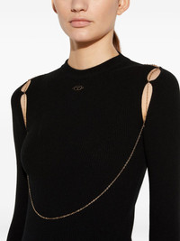 chain-embellished top Highlights - Black - Cut-out detailing - Gold-tone logo plaque - Crew neck - Long sleeves Made in Italy Composition Viscose 70%, Polyester 30% Washing instructions Hand Wash