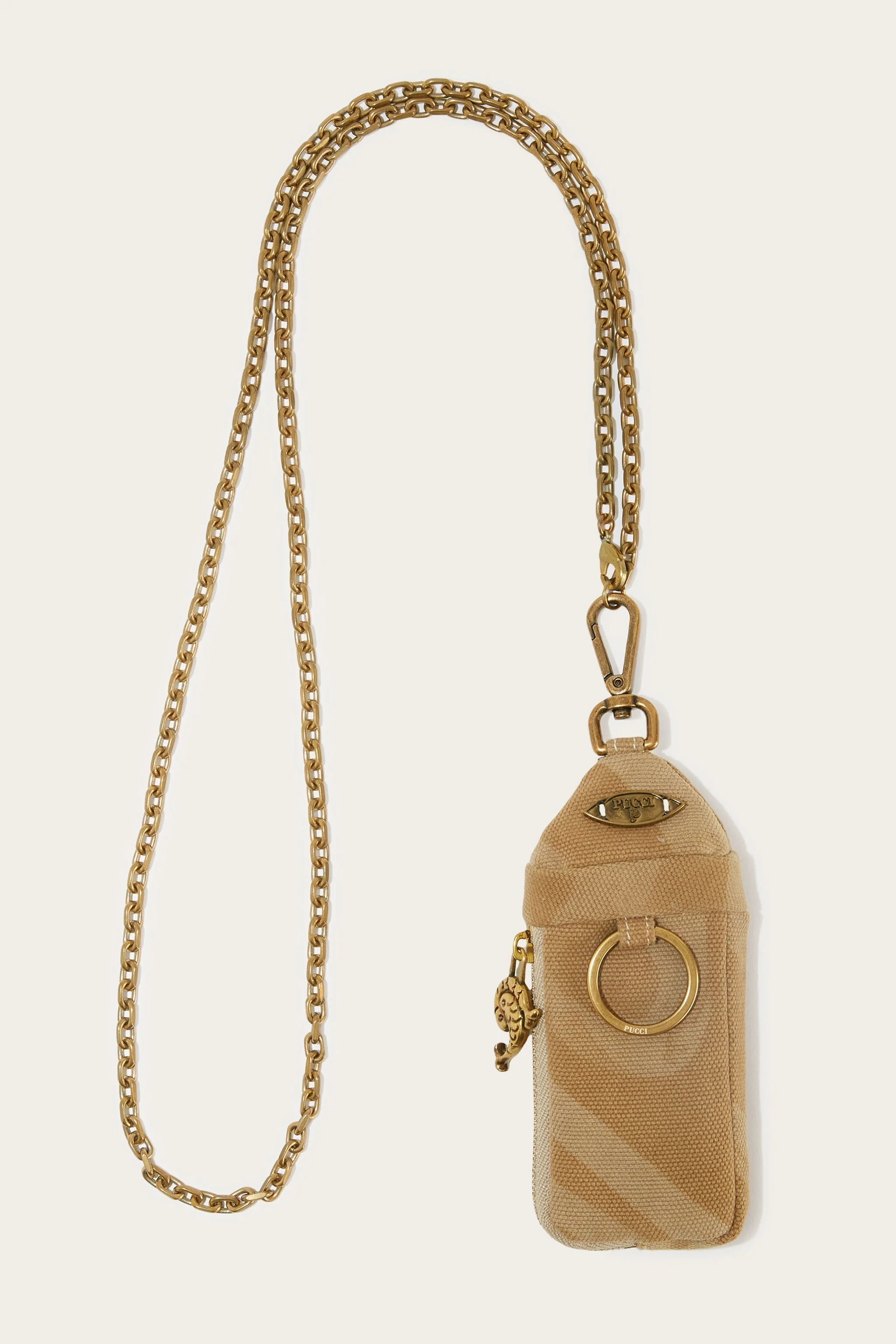A functional and chic accessory that stands out for its refined design. This card holder is designed to accompany you in your daily life in style, thanks to the laser-etched Marmo print that lends character and uniqueness.Perfect for those looking for a practical accessory without sacrificing sophistication. - To offer you a unique Pucci garment, we use an all-over print that makes the product unrepeatable. Therefore, the pattern print may vary from the one displayed in the photo. - Sand - Outer: 100% Cotton (Gabardine Marmo laser-designed) - Interior: 100% Polyamide (Printed Nylon) - Finish: Cowhide (Bos taurus) - Enameled Pucci plaque and Pesci-shaped zipper pull - Adjustable hook and chain - Not washable. - Made in Italy - ID: 5HSG265H999A02 - Model is 178 cm tall and wears a 38 italian size.