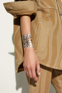 A touch of light on the skin, a distinctive mark that celebrates art and creativity made in Pucci. This temporary tattoo kit is designed for those who love to play with their style, adding unique and sparkling details to the look. The silver metal finish gives an incredible jewel effect, perfect for embellishing the skin with 7 exclusive designs inspired by the brand's most iconic elements: from the famous fish to the fun lips, to the graphic details of the most recognizable prints. The pack contains 10 sheets, to create always new combinations and transform every look with a gesture as simple as it is impactful. Apply them as desired and take with you an unmistakable sign of originality and style. - Palladium - Main material: Anodized aluminium - Silver metal finish - 7 exclusive designs - Pack of 10 sheets - Apply to body for temporary jewel effect - Not to be washed - Made in Italy - ID: 5HAZ015H280N52