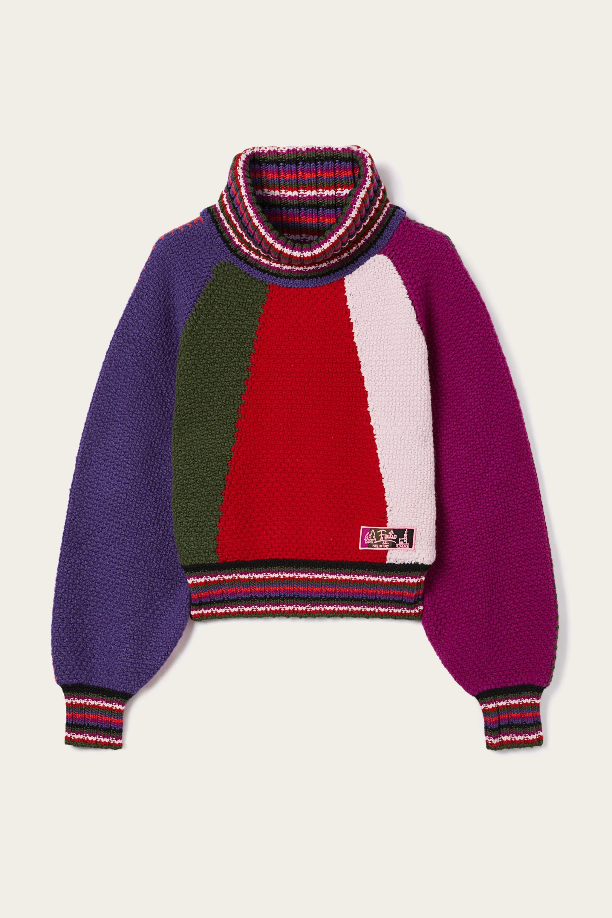 A piece that combines the lively spirit of Pucci with refined details. This sweater is made from pure wool, with batwing sleeves that add volume and movement to the silhouette. The crater neck and color block design highlight the embroidered patch, while the multicolor Orchidee print, inspired by the historic archives, adds an artistic and playful touch. Ideal for adding character to even the most essential looks. - Multicolor - 100% wool - Crater neck - Batwing sleeves - Embroidered patch - Soft and snug fit - Dry clean only - Made in Italy - ID: 5UKM105U963017