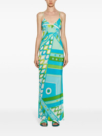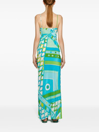 Vivara-print silk maxidress Highlights - Blue/green - Silk - Crepe de chine - Abstract pattern print - V-neck - Square open back - Spaghetti straps - Slip silhouette - Straight hem - Long length Made in Italy Composition Silk 100% SIZE & FIT Measurement CHEST 34.64 in(88 cm) LENGTH 60.62 in(154 cm) WAIST 33.07 in(84 cm) HIPS 40.94 in(104 cm) Washing instructions Dry Clean Only
