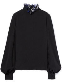 crepe top Highlights - Black - Ruffle collar - Long puff sleeves - Buttoned cuffs Made in Italy Composition Silk 100%
