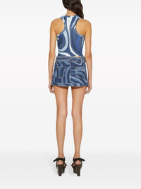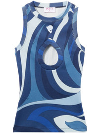 Marmo-print tank top Evoking an ocean-like quality, this PUCCI tank top is saturated with the brand's signature Marmo print, composed of abstract, undulating lines rendered in varying shades of blue. Cut from stretch-cotton, it's finished with an intertwining-fish logo applique and teardrop cut-out at the front. Highlights - Navy blue/multicolour - Stretch-cotton - Abstract pattern print - Applique logo - Cut-out detailing - Ribbed trim - Crew neck - Sleeveless - Racerback - Straight hem Made in Italy Composition Cotton 98%, Elastane 2%