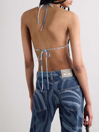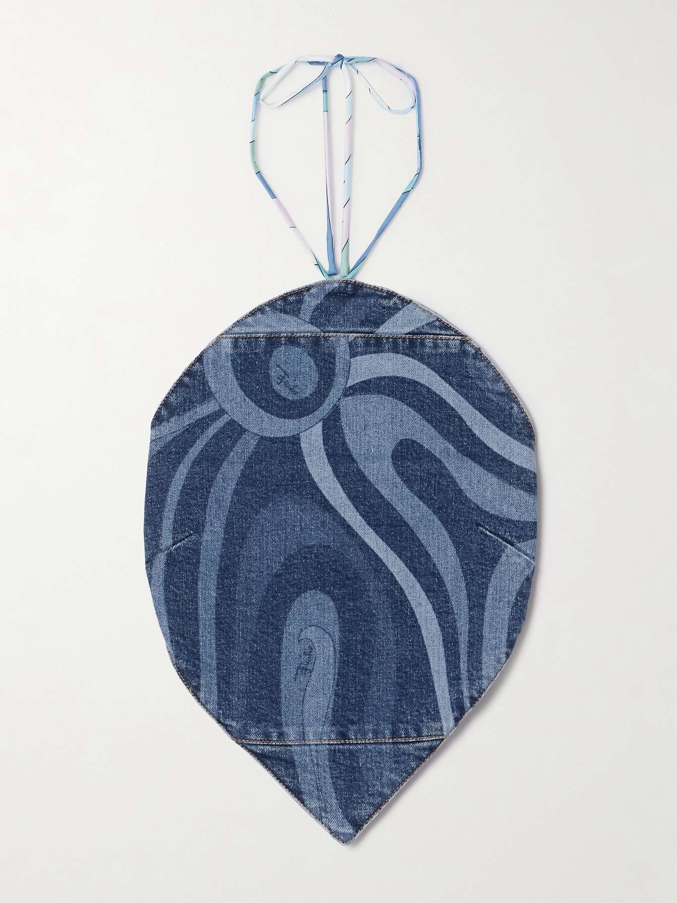 EDITORS'NOTES PUCCI's top is printed with a swirled 'Marmo' pattern originally developed by the house in 1968. It's been made in Italy from tonal-blue denim and has ties at the neck and open back. Style yours with a mini skirt and mules. SIZE & FIT Model measurements: - Fits true to size, take your normal size - Intended for a close fit - Ties at the back for an adjustable fit - Lightweight, non-stretchy fabric - Model is 183cm/ 6'0" and is wearing an IT 40 - Bust: 79cm/ 31" - Waist: 61cm/ 24" - Hip: 85cm/ 35.5" DETAILS & CARE - Tonal-blue denim - Ties at neck and back - 99% cotton, 1% elastane - Machine wash