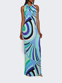 Details - Maxi length - Adjustable halterneck - Cowl neck - Low back - Back vent - Logo print details - Care according to label - Material: 100% Cotton Size Information: Vendor Color Code: Brand Style: 5HJI70 5H757 Designer/Brand: PUCCI