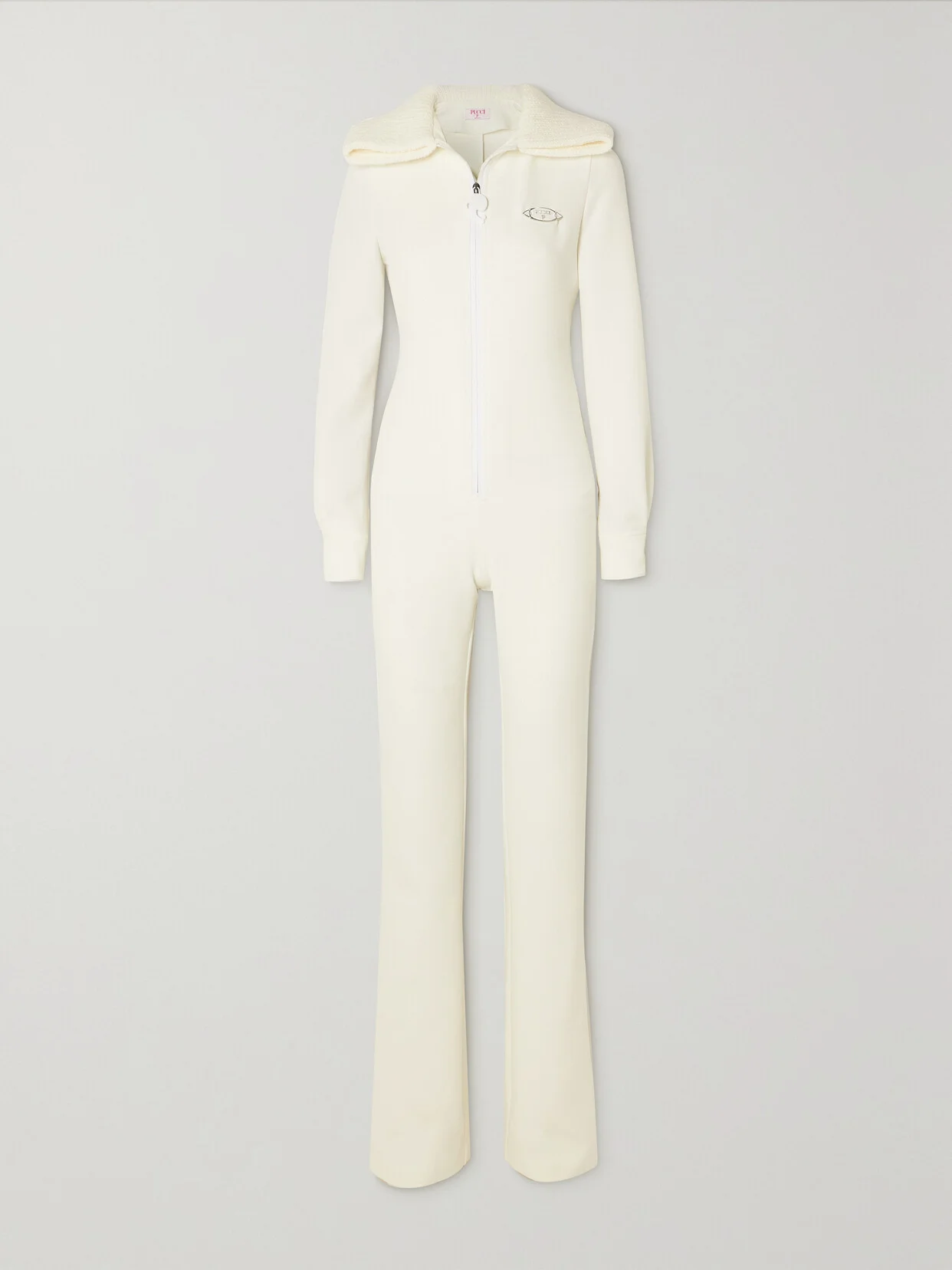 Even when PUCCI designs without its signature kaleidoscopic prints, the results are just as captivating. This retro-inspired jumpsuit is made from springy stretch-crepe that skims the figure. The details - logo plaques and a rib-knitted collar - come in a matching white shade for an effortlessly clean look.
