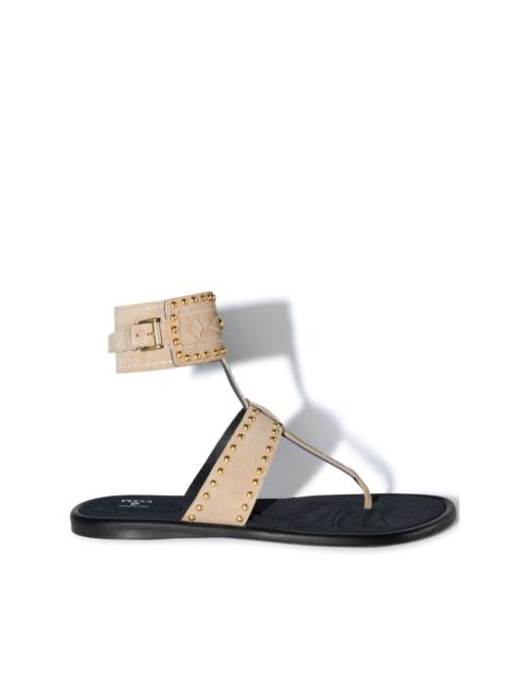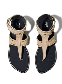 Emilia stud-embellished flat sandals Highlights - Light beige/black - Calf leather - Contrast stitching - Gold-tone stud embellishment - T-bar strap - Open toe - Buckle fastening - Branded insole - Flat leather sole Made in Italy Composition Sole: Calf Leather 100% Outer: Calf Leather 100% Lining: Calf Leather 100% SIZE & FIT Measurement HEEL 0.31 in(0.8 cm)