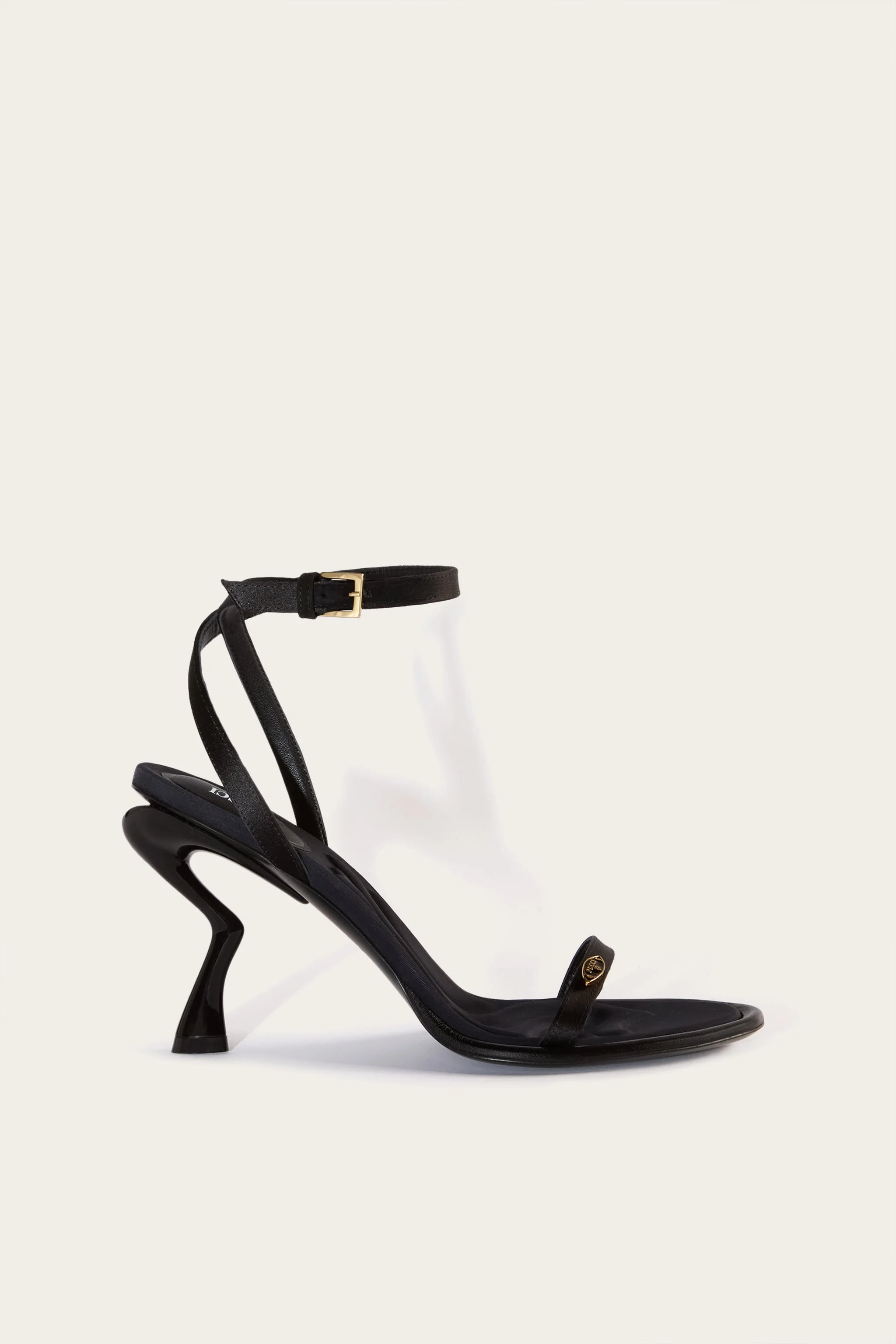 With a high heel sculpted to look like a horse's leg, these sandals showcase Pucci's playful side. They're complete with black satin straps and a polished logo plaque. - Black - High sculptural heel - Contoured footbed with logo - Slim front strap with enamelled logo plaque - Open round toe - Leather sole - Silver-tone metal hardware - Buckled ankle strap - 72% viscose, 28% silk; lining: 100% leather; sole: 100% leather - Style ID: 4UCD454UX14999 - Heel height: 80mm