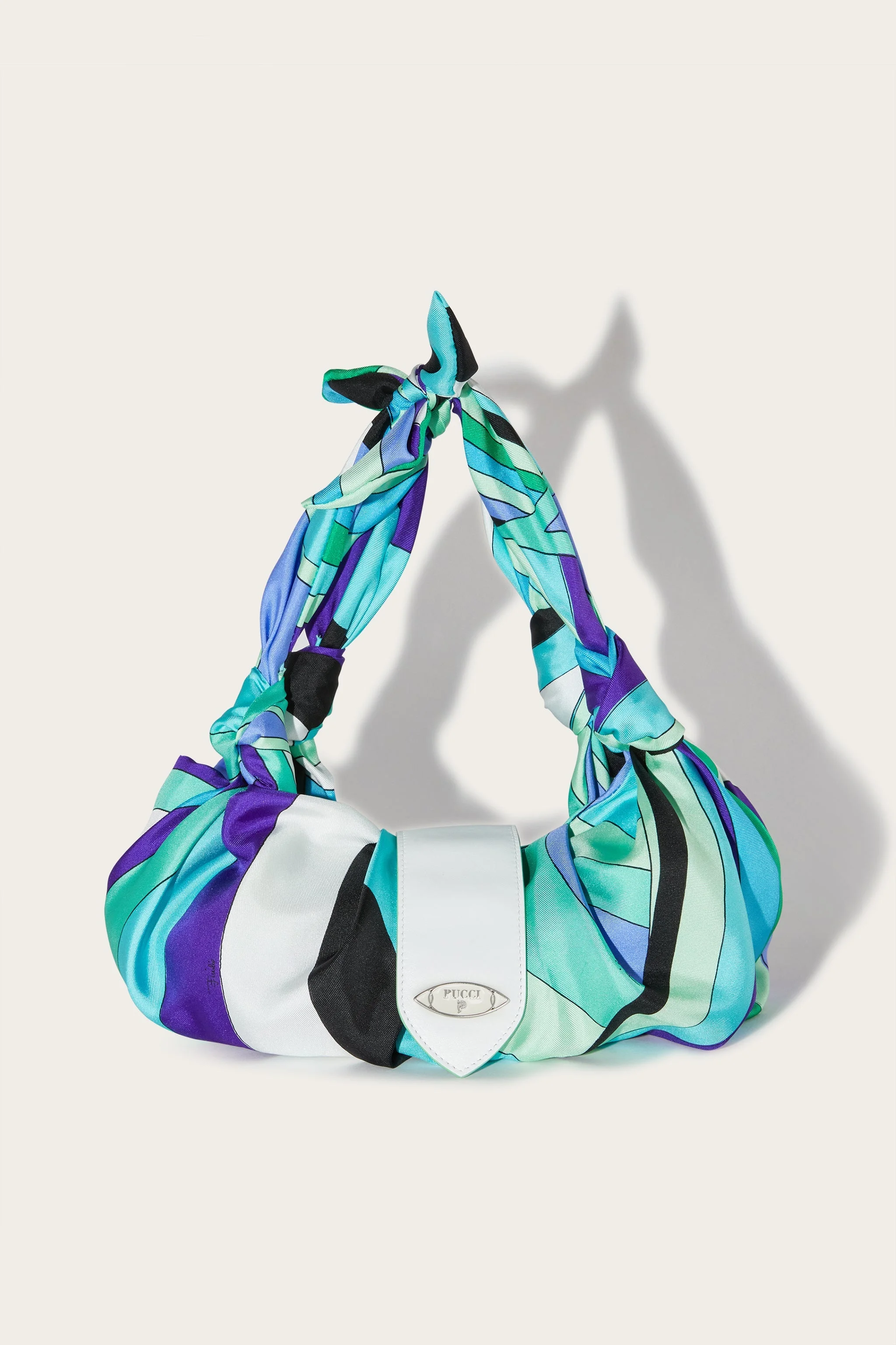 The foulard bag is much more than an accessory: it is a tribute to the elegance and lightness that distinguish the Pucci style. Perfect for a relaxed promenade around town, an aperitif with friends or a special occasion, this bag stands out for its fluid design and sophisticated details. The Iride print in shades of green and lilac evokes a sense of freshness and femininity, making it ideal for completing spring and summer looks with a touch of charm.The soft nappa leather flap, embellished with an enameled Pucci plaque, adds an element of structured elegance, while printed silk twill for the interior and exterior lends a refined and luxurious air. Lightweight, versatile, and full of character, this bag is the perfect complement for anyone who loves to stand out with class. - Green and lilac - Iride print - Silk twill printed interior and exterior - Nappa leather flap - Enameled Pucci plaque - ID: 5HBD005H751009