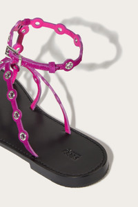 Worn for strolling along the coast or adding a touch of “laid-back” elegance to summer outfits, these flat sandals combine sophisticated design with everyday comfort. The suede upper and buckles decorated with small metal studs evoke a bold, rock appeal, ideal for accenting cool summer looks.The adjustable buckle closure ensures a perfect fit, while the leather sole adds a handcrafted touch that enhances the quality of the design. - Purple - Suede leather - Micro-studded decorated buckles - Adjustable buckle closure - One-piece leather sole - ID: 5HCC295HX10575