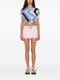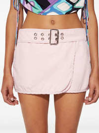 eyelet detail belted miniskirt Highlights - Light pink - Cotton-silk blend - Mid-rise - Eyelet detailing - Belt loops - Belted waist - Wrap design - Two rear zip-fastening pockets - Logo charm - Thigh-length Made in Italy Composition Cotton 65%, Silk 35%