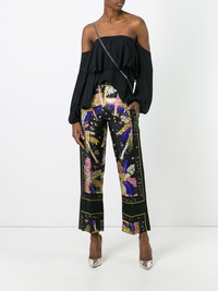 feather motif cropped trousers