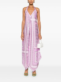 Festa-print silk midi dress Highlights - Lilac purple - Silk - Twill weave - Festa print - Halterneck - Plunging v-neck - Sleeveless - Low back - Unlined - Handkerchief hem - Mid-length Made in Italy Composition Silk 100% SIZE & FIT FittingInformation Designed for a close fit at the chest and waist with a loose fit at the hip Made from a lightweight non-stretch fabric