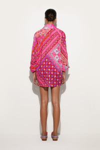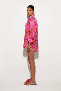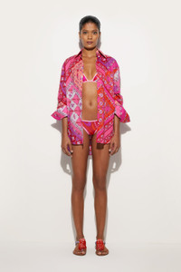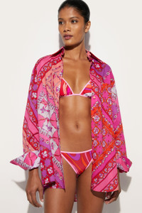 A fresh and sophisticated interpretation of an essential garment. This long-sleeved shirt features a slightly oversized fit that falls naturally, giving a relaxed yet refined allure. The light draped cotton with its soft hand caresses the skin and ensures maximum comfort for any occasion. The classic design, with a collar and button closure, is enhanced by a side pocket, a practical detail that completes the look. The Festa print in shades of coral and fuchsia adds a distinctive touch, turning this shirt into a versatile and timeless garment. - To offer you a unique Pucci garment, we use an all-over print that makes the product unrepeatable. Therefore, the pattern print may vary from the one displayed in the photo. - Coral and fuchsia - 100% Cotton - Slightly oversized fit - Slightly oversized length - Collar with button closure - Side pocket - Hand wash. - Made in Italy. - ID: 5HRJ145H764034 - Model is 175 cm tall and wears Italian size 38.
