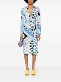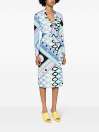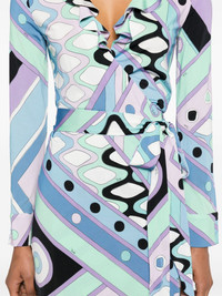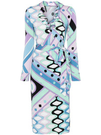 geometric wrap midi dress Highlights - Multicolour - Stretch-design - Geometric print - Wrap design - V-neck - Ruffled detailing - Long sleeves - Split cuffs - Mid-length - Tied waist Made in Italy Composition Viscose 95%, Elastane 5% SIZE & FIT Model measurements Height 5 ft 10 in(1.77 m) Bust/Chest 33.07 in(84 cm) Hips 37 in(94 cm) Waist 24.8 in(63 cm) Measurement CHEST 29.92 in(76 cm) SLEEVE LENGTH 22.04 in(56 cm) HIPS 34.64 in(88 cm) LENGTH 41.33 in(105 cm) WAIST 25.19 in(64 cm) FittingInformation Designed for a wraparound style that can be adjusted to your preference The adjustable tie waist gives a more adaptable and personalised fit Made from a midweight stretch fabric, this piece offers elasticity and flexibility when worn This piece fits true to size – take your usual size Washing instructions Dry Clean Only