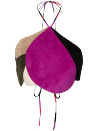 Goccia suede crop top Highlights - Multicolour - Goatskin - Halterneck tie fastening - Rear tie fastening - Cropped - Asymmetric hem Made in Italy Composition Lining: Polyester 100% Outer: Goat Skin 100% SIZE & FIT Model measurements Height 5 ft 10 in(1.77 m) Bust/Chest 30.7 in(78 cm) Hips 35.03 in(89 cm) Waist 23.62 in(60 cm) FittingInformation Designed for a slim fit that sits just away from the body offering a close yet comfortable fit The tie fastening gives an adaptable and personalised fit Suede leather has a soft and treated construction offering some flexibility This piece fits true to size – take your usual size