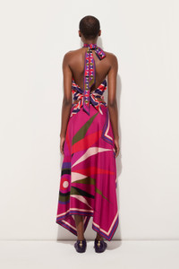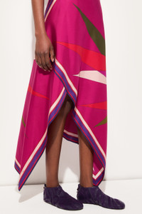 Flowing and lightweight, this asymmetrical scarf skirt is a tribute to the freedom and solar energy typical of Pucci's DNA. The multicolored Hawaii print translates into a graphic explosion of light and color. The irregular cut adds movement and modernity, while the waistband elegantly emphasizes the silhouette. - To offer you a unique Pucci garment, we use an all-over print that makes the product unrepeatable. Therefore, the pattern print may vary from the one displayed in the photo. - Multicolor - 100% silk - Asymmetrical cut - Defined waistband - Midi length - Flowing fit - Dry clean only - Made in Italy - ID: 5URW155U843030