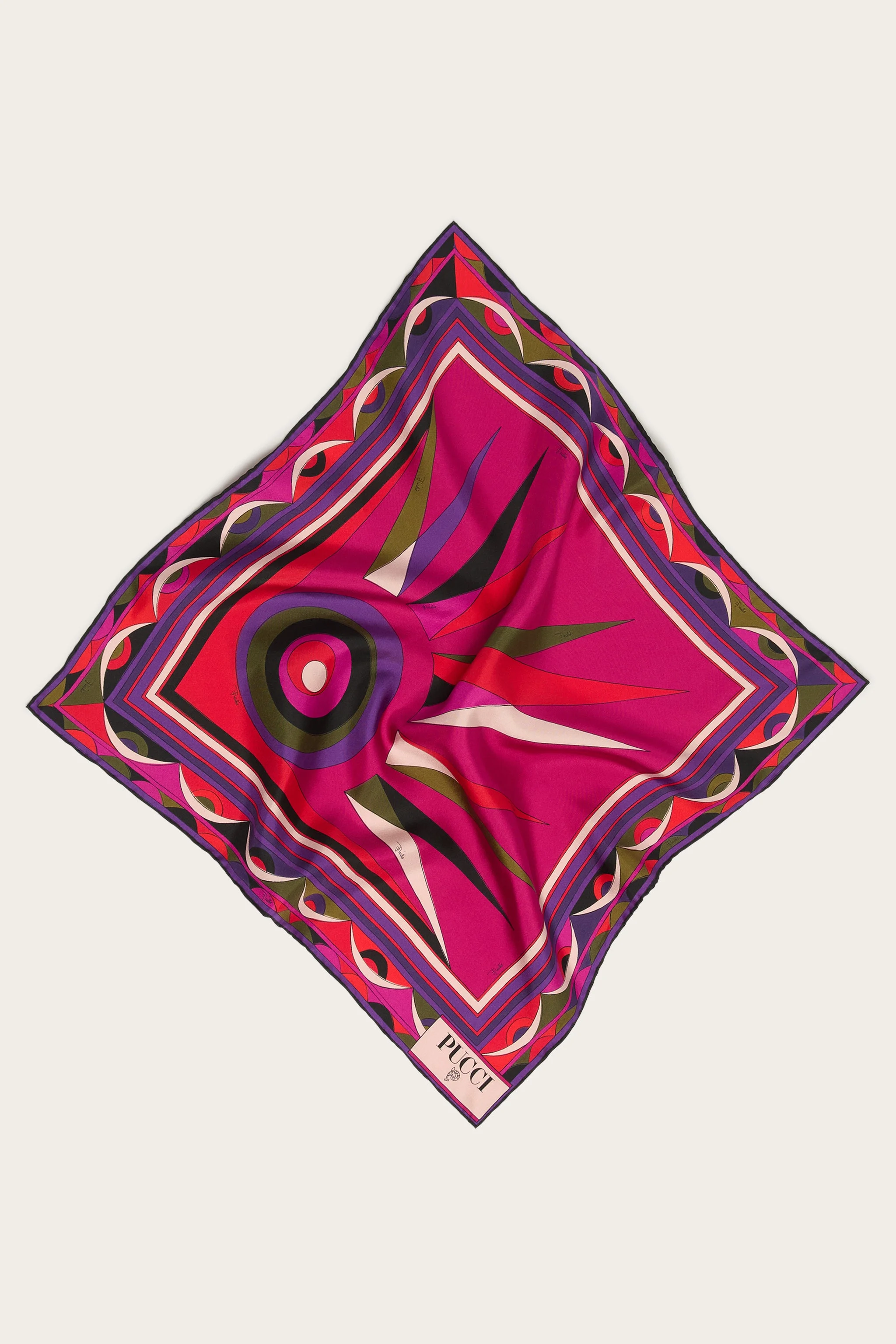 Can such a small and subtle accessory be a big statement? Absolutely. This printed silk twill square is a tribute to iconic Pucci prints, reinterpreted in a multicolor key. With its compact size, it's the perfect accessory to add a distinctive touch to any outfit. Tie it around your neck for a classic look, use it as a hair accessory or as a decoration for your bag: its versatility makes it a must-have for every wardrobe. A piece that celebrates the art of detail and the timeless elegance of the brand. - Multicolor - Silk - Dimensions: 52x52 cm - Dry clean only. - Made in Italy - ID: 5UGB505UC151