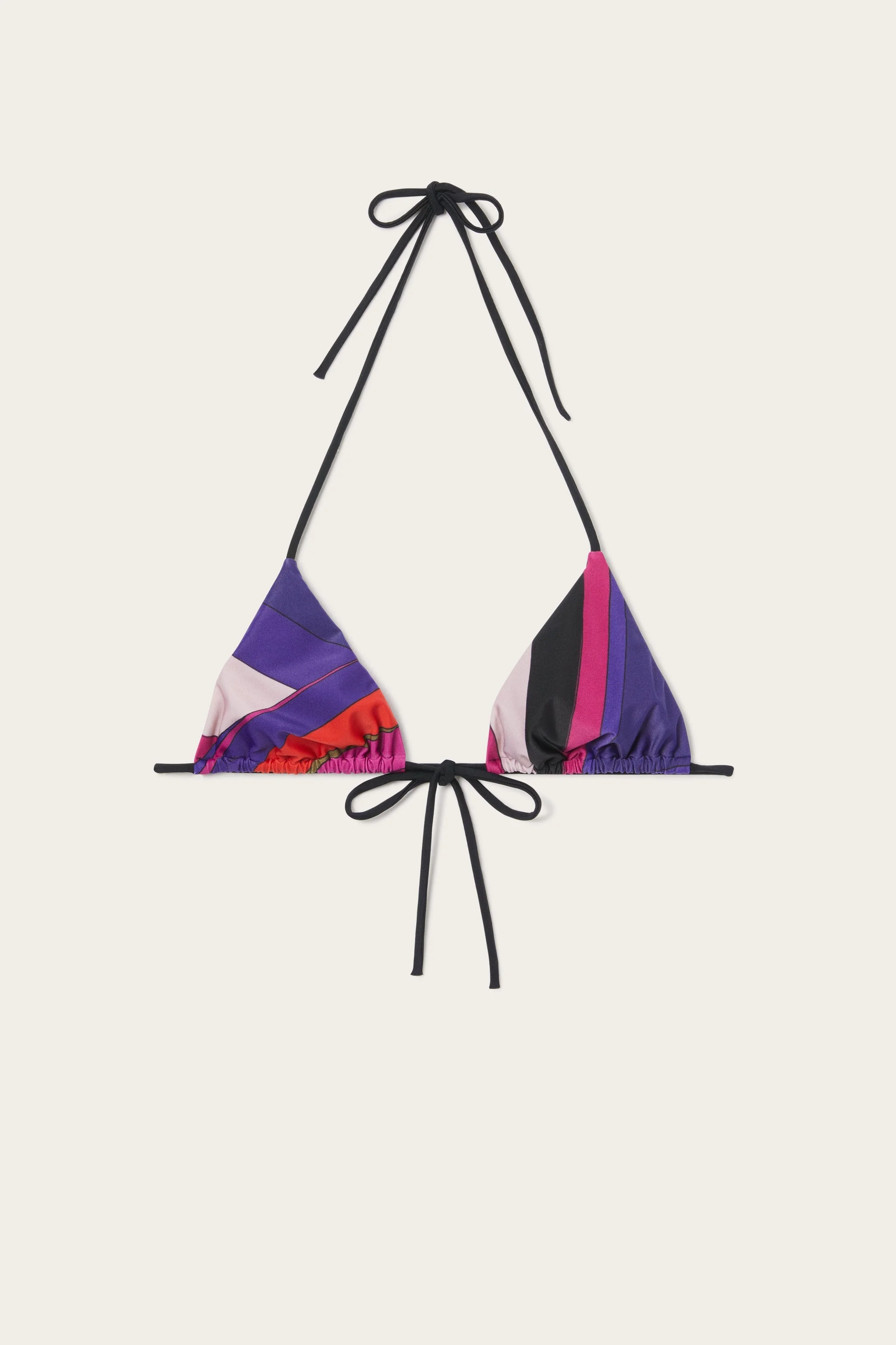 Designed to combine practicality and style, perfect for accompanying you during your moments of relaxation in the sun: this adjustable triangle bra, with closures at the neck and center, adapts perfectly to any comfort and fit requirement. The removable cups allow you to choose the ideal support, making it a versatile garment for any occasion. Made from stretchy Lycra with UV protection, this bikini not only guarantees protection from the sun, but also stands out for its iconic multicolor Iride print. Pair it with the matching briefs for a total Pucci look. - To offer you a unique Pucci garment, we use an all-over print that makes the product unrepeatable. Therefore, the pattern print may vary from the one displayed in the photo. - Multicolor - Elastic Lycra with UV protection - Removable cups - Adjustable closure at the neck and center - Hand wash - Made in Italy - ID: 5UMX225U755011