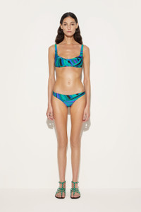 A perfect balance between comfort and style. These bikini briefs hug the figure with a flawless fit, guaranteeing freedom of movement and support. Made of stretch lycra with an anti-UV treatment, they ensure extra protection under the sun and are pleasant to the touch. The emerald Iride print adds a vibrant and refined touch, perfect for those who love to stand out with elegance even by the sea. - To offer you a unique Pucci garment, we use an all-over print that makes the product unrepeatable. Therefore, the pattern print may vary from the one displayed in the photo. - Emerald - Stretch lycra with UV protection - Main fabric: 80% polyamide, 20% elastane - Hand wash. - Made in Italy. - ID: 5HMX165H855060 - Model is 177 cm tall and wears an Italian size 38.