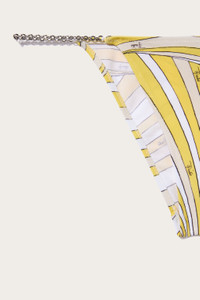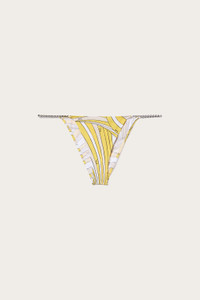 A mix of femininity and iconic details, these bikini bottoms reinterpret beach style with a sophisticated twist. The minimalist design is enhanced by metal chain ties at the sides, adding brightness and a precious accent to the look.Made of stretch Lycra with anti-UV treatment, they offer a comfortable fit and protection from the sun's rays. The Iride print in shades of black and fuchsia expresses all the energy and dynamism of the Pucci aesthetic, perfect for those who like to stand out even at the beach. - To offer you a unique Pucci garment, we use an all-over print that makes the product unrepeatable. Therefore, the pattern print may vary from the one displayed in the photo. - Yellow - Stretchy Lycra with anti-UV treatment - Main fabric: 80% Polyamide, 20% Elastane - Hand wash. - Made in Italy - ID: 5CMX655V855005