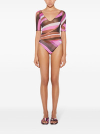 Iride-print bodysuit Highlights - Pink/multicolour - Semi-sheer construction - Tulle lining - All-over graphic print - V-neck - Short sleeves - Lettuce trim - Just a reminder that this piece must be tried on over your own garments. Made in Italy Composition Nylon 100%