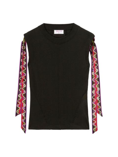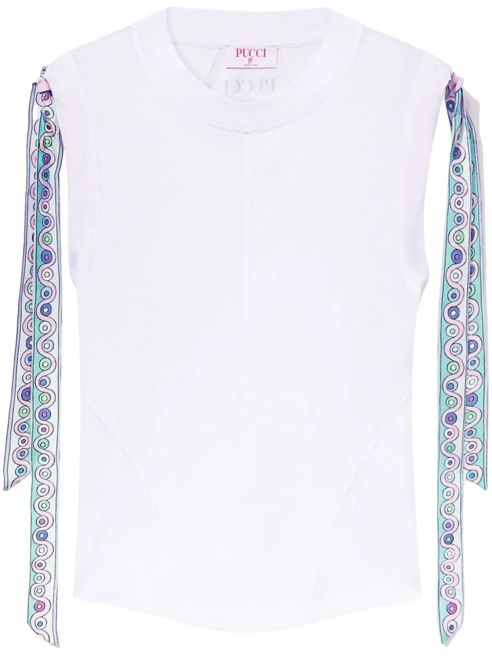 Iride-print cotton T-shirt Highlights - Chalk white - Cotton blend - Jersey texture - Iride print - Lace-up detailing - Contrasting trim - Round neck - Sleeveless Imported Composition Cotton 50%, Modal 50%