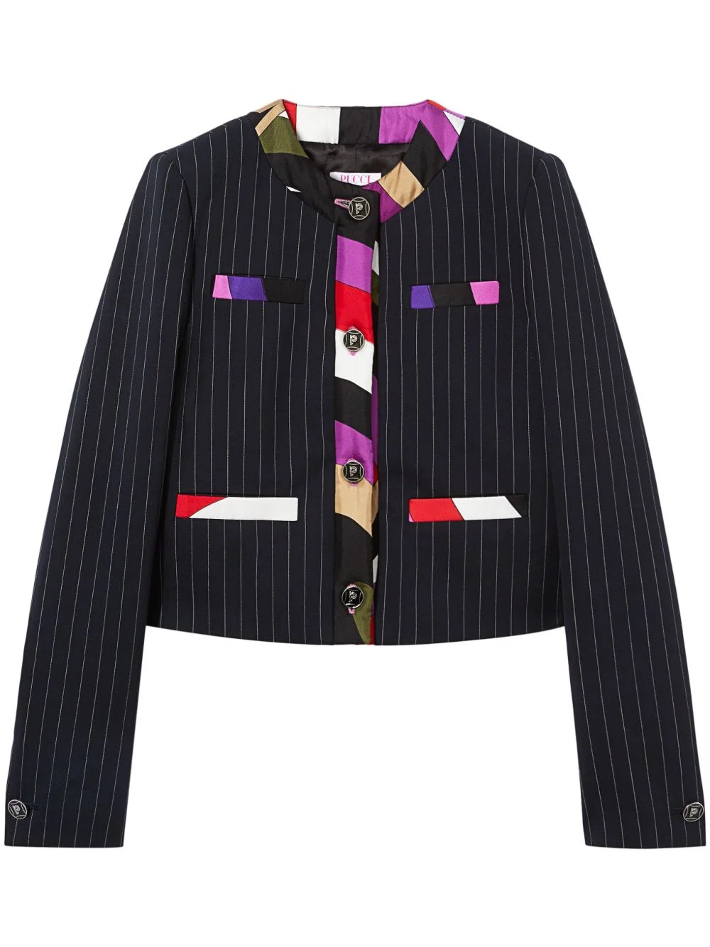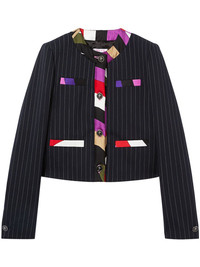 Iride-print jacket Highlights - Black - Front button fastening - Buttoned cuffs - Faux pocket detail - Pinstripe pattern Made in Italy Composition Outer: Virgin Wool 95%, Spandex/Elastane 5% Lining: Viscose 100% Washing instructions Dry Clean Only