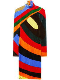 Iride-print midi dress Highlights - Multicolour - Velvet effect - Geometric print - Rear zip fastening - Roll neck - Long sleeves - Straight hem - Mid-calf length Made in Italy Composition Rayon 100%, Polyamide 100%