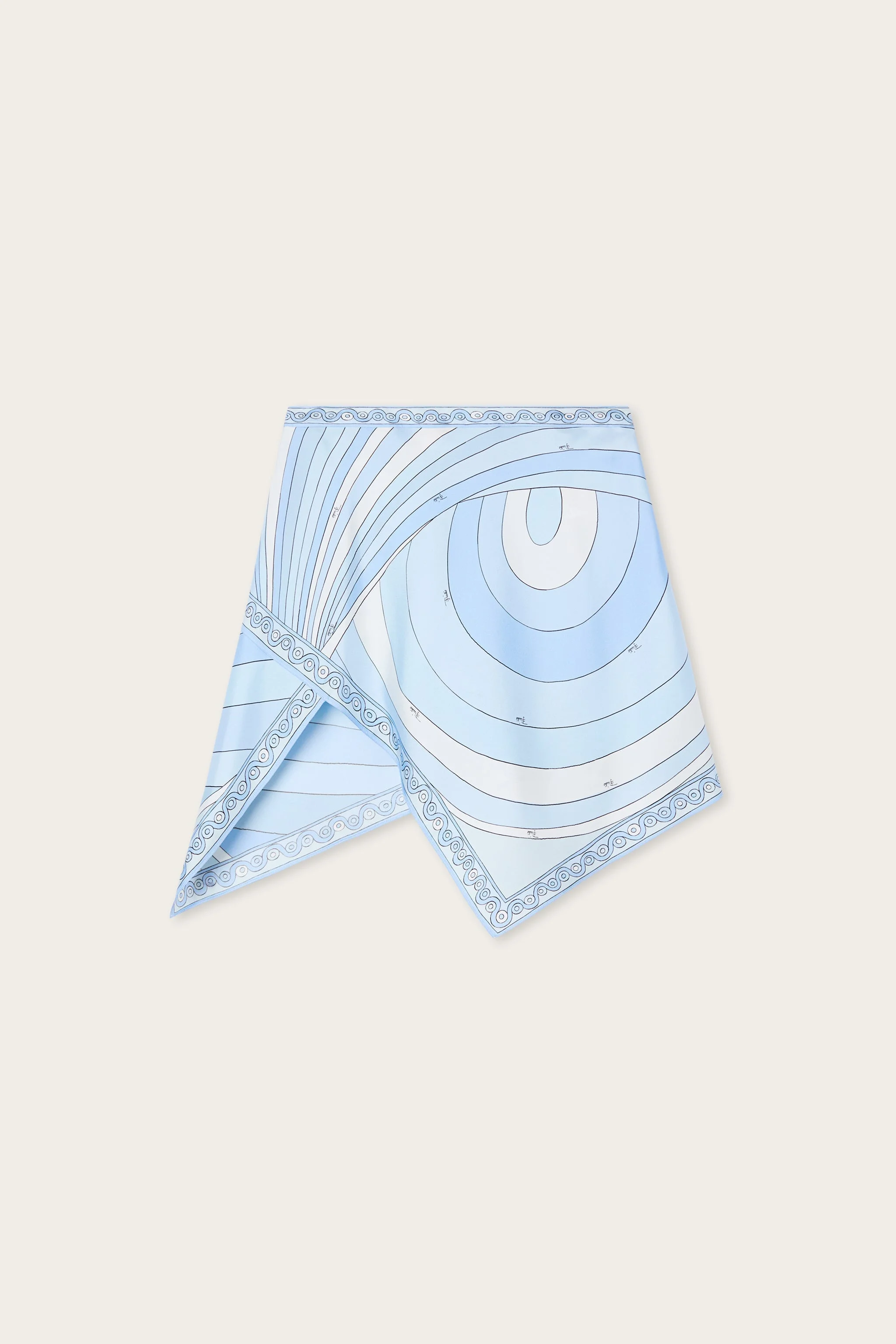 A flowing, refined skirt that recalls the iconic aesthetic of Pucci silks. Made from silk twill, it wraps lightly around the body, allowing the Iride print in pale blue to express itself with an elegant, continuous graphic rhythm. The side zip maintains a clean and functional line, enhancing a simple yet sophisticated silhouette. A garment designed to accompany movement naturally, where color and material interact in perfect balance. - To offer you a unique Pucci garment, we use an all-over print that makes the product unrepeatable. Therefore, the pattern print may vary from the one displayed in the photo. - Pale Blue - 100% silk - Scarf style - Side zip closure - Delicate dry clean - Made in Italy - ID: 6HRV876H756012