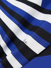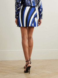 EDITORS'NOTES PUCCI's skirt is printed with its archival 'Iride' pattern, inspired by the concentric elements of an eye. It's cut from silk-twill for a mini, wraparound shape and comes in beautiful shades of blue and navy. Look closer and you'll notice the founder's name interspersed within the stripes. SIZE & FIT Model measurements: - Fits true to size, take your normal size - Mini-length, designed to be worn just below the natural waist - Mid-weight, non-stretchy fabric - Model is 175cm/ 5'9" and is wearing an IT 40 - Bust: 81cm/ 32" - Waist: 64cm/ 25" - Hip: 89cm/ 35" DETAILS & CARE - Black, white and tonal-blue silk-twill - Concealed snap fastening at side - 100% silk; lining: 67% acetate, 33% polyester - Dry clean