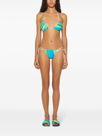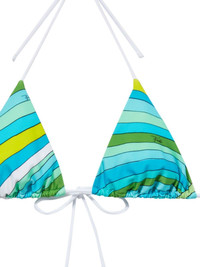 Iride-print triangle bikini top Highlights - Turquoise blue-green - Multicolour - Stretch-design - All-over graphic print - Triangle cup - Removable pads - Halterneck tie fastening - Rear tie fastening Made in Italy Composition Nylon 80%, Elastane 20% Washing instructions Hand Wash