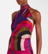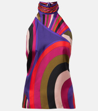 The iconic psychedelic swirling motif is a brand signature, which earned Pucci the title "Prince of Prints". Made purely from silk satin, this top is a sleeveless style with the iconic Iride print.. Product Details - Material: 100% silk - Care instructions: dry clean - Made in Italy - Designer color name: Multicolor - Item color: multicolor - Self-tie collar - Item number: P01110729 Size & Fit - True to size - One size: perfect fit for sizes XS-L - Low back - Straight fit - Adjustable hem - Non-stretchy fabric - Falls to the hip