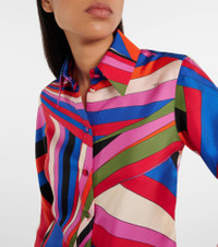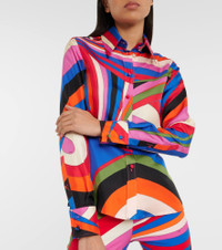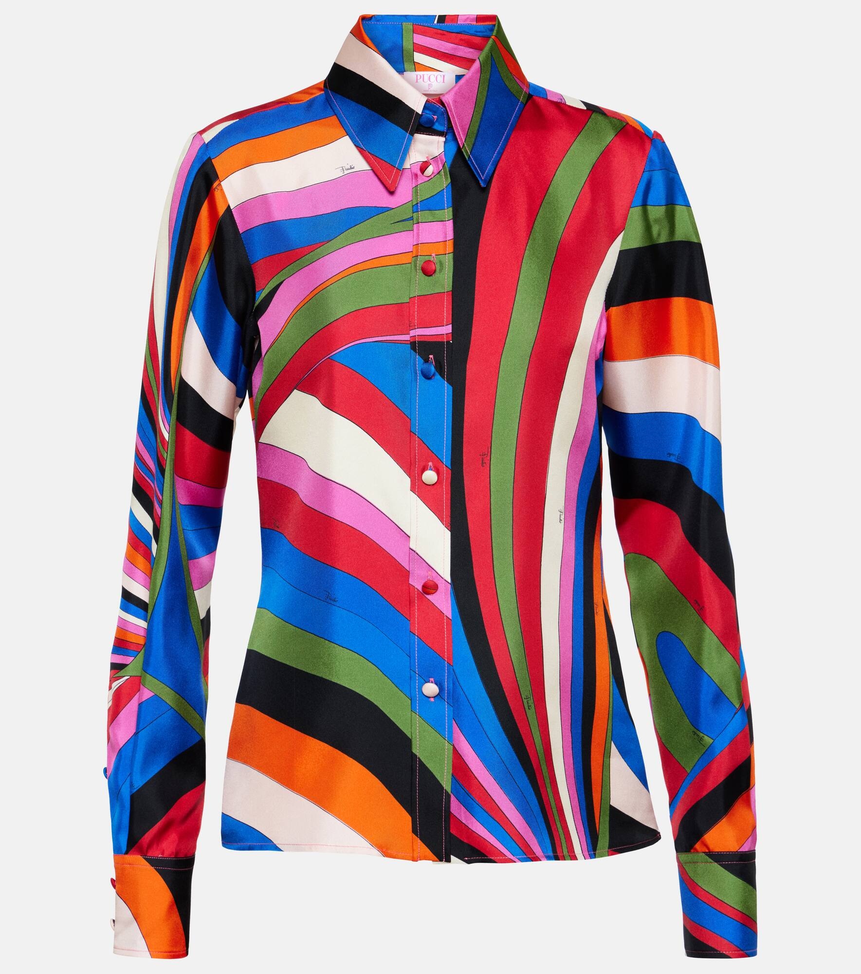 The iconic psychedelic swirling motif is a brand signature, which earned Pucci the title "Prince of Prints". The Iride print adorns this shirt, made in Italy purely from silk. Product Details - Material: 100% silk - Care instructions: dry clean - Made in Italy - Designer color name: Blu/Fuxia - Closure: buttoned front - Item number: P00872599 Size & Fit - True to size - Cinched waist - Mid-weight material - Falls below the hip - The model seen in the picture is 178cm-5'10" and wearing a size IT 40