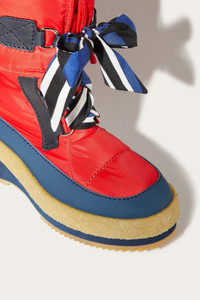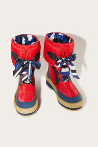 Camille Miceli reimagines the protective snow boot through a Pucci lens. The Iride print covers the lining and the laces at the front, while the house’s intertwined fish are appliqued at the side. - Bright red, navy blue, white, black - Intertwined fish applique at side - Iride-print ties at front - Round toe - Rubber tread sole - Silver-tone metal hardware - Lace-up front fastening - 100% nylon; lining: 80% nylon, 20% elastane - Style ID: 4UCF104UX22R57