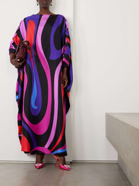 EDITORS'NOTES There's no mistaking the print decorating PUCCI's kaftan - it's a scaled-up version of the 'Marmo' swirls that have long been a brand signature. Made from silk-twill, it has an effortlessly loose shape and is threaded with slim ties along the sleeves to create a ruched effect. Style yours with statement earrings. SIZE & FIT Product measurements: - Comfortably fits those who are between a size XSmall-Medium - Length: 144cm / 56.7in DETAILS & CARE - Multicolored silk-twill - Slips on - 100% silk - Dry clean
