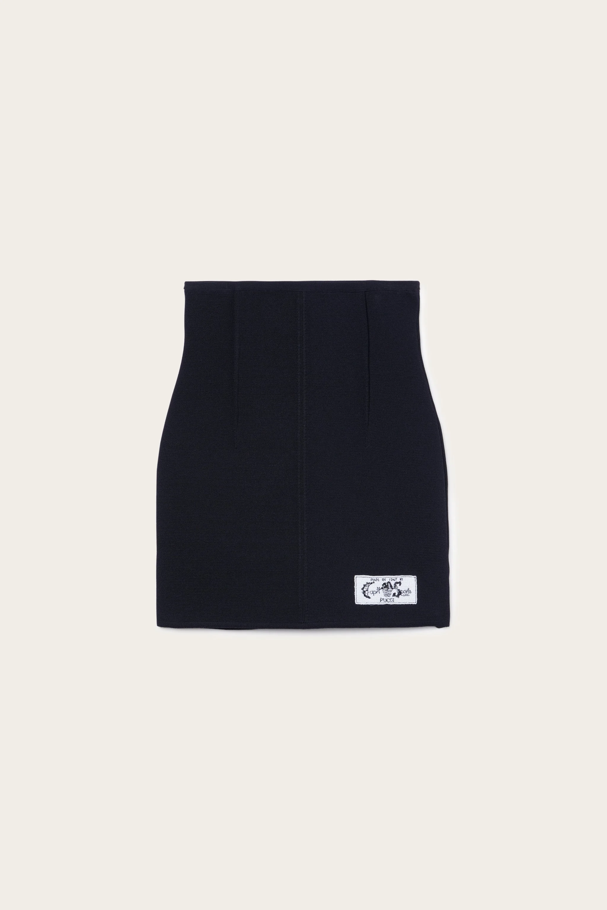 An essential and sophisticated silhouette, perfect for enhancing the shape with elegance. This bodycon miniskirt is made of a structured fabric that ensures a flawless and comfortable fit. The fitted design is embellished with the Pucci label embroidered on the front, a distinctive detail that underscores the brand's identity. The timeless and versatile black color makes it a key garment for looks with a contemporary spirit. - Black - Embroidered Pucci label on front - Main fabric: 68% Viscose, 32% Polyamide - Gently dry clean. - Made in Italy - ID: 5HKV515H954999 - Model is 177 cm tall and wears Italian size 38.