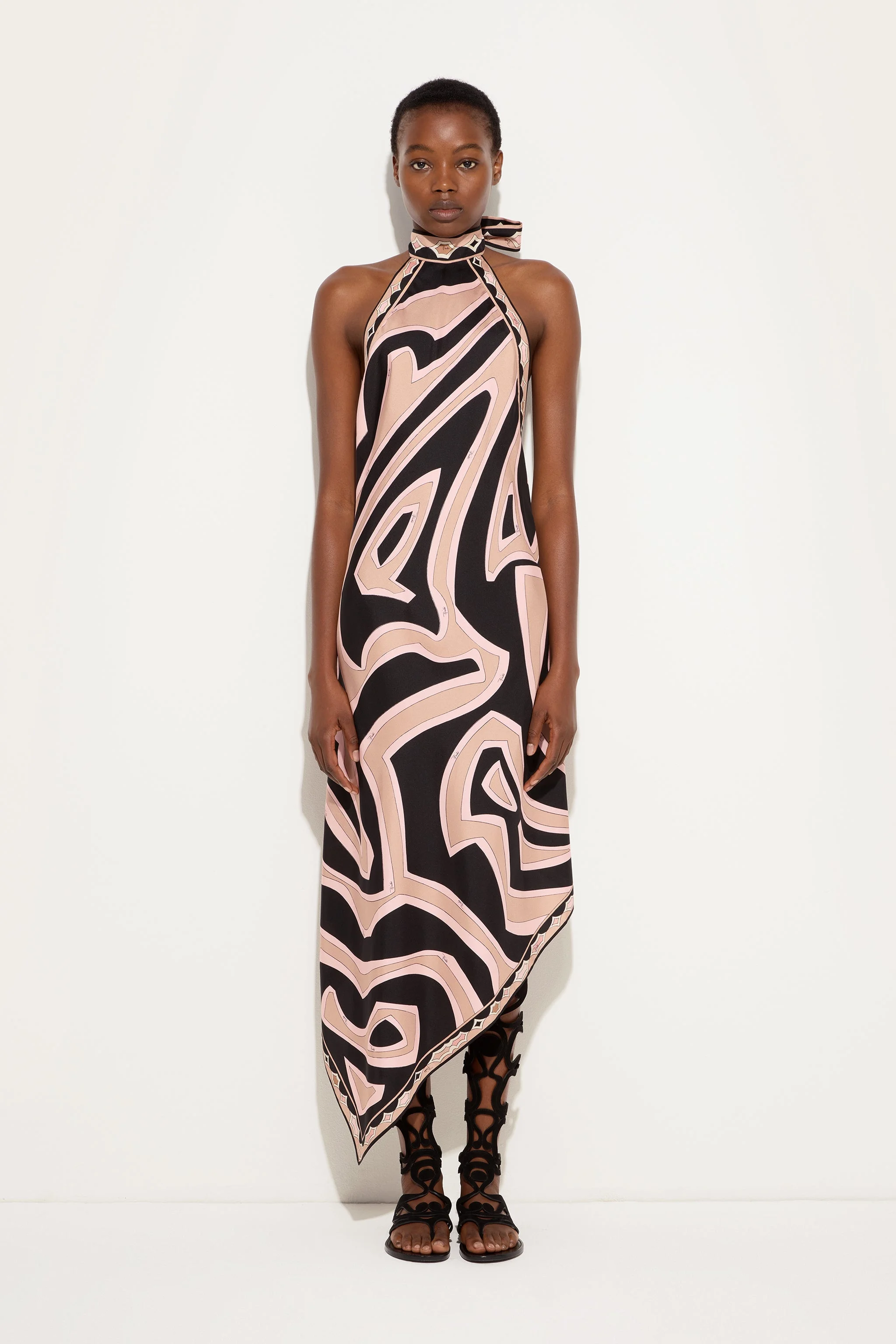 LABIRINTO PRINT SILK DRESS WITH HALTER NECKLINE