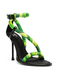 Lee 100mm Iride-print sandals Highlights - Lime green/multicolour - Graphic-print strap - Tubular-strap design - Almond open toe - Ankle touch-strap fastening - Branded leather insole - Cushioned insole - 100mm high heel Made in Italy Composition Lining: Polyamide 100% Sole: Calf Leather 100% Outer: Polyamide 100% SIZE & FIT Measurement CIRCUMFERENCE 7.87 in(20 cm) HEEL 3.93 in(10 cm) HEIGHT 3.14 in(8 cm)