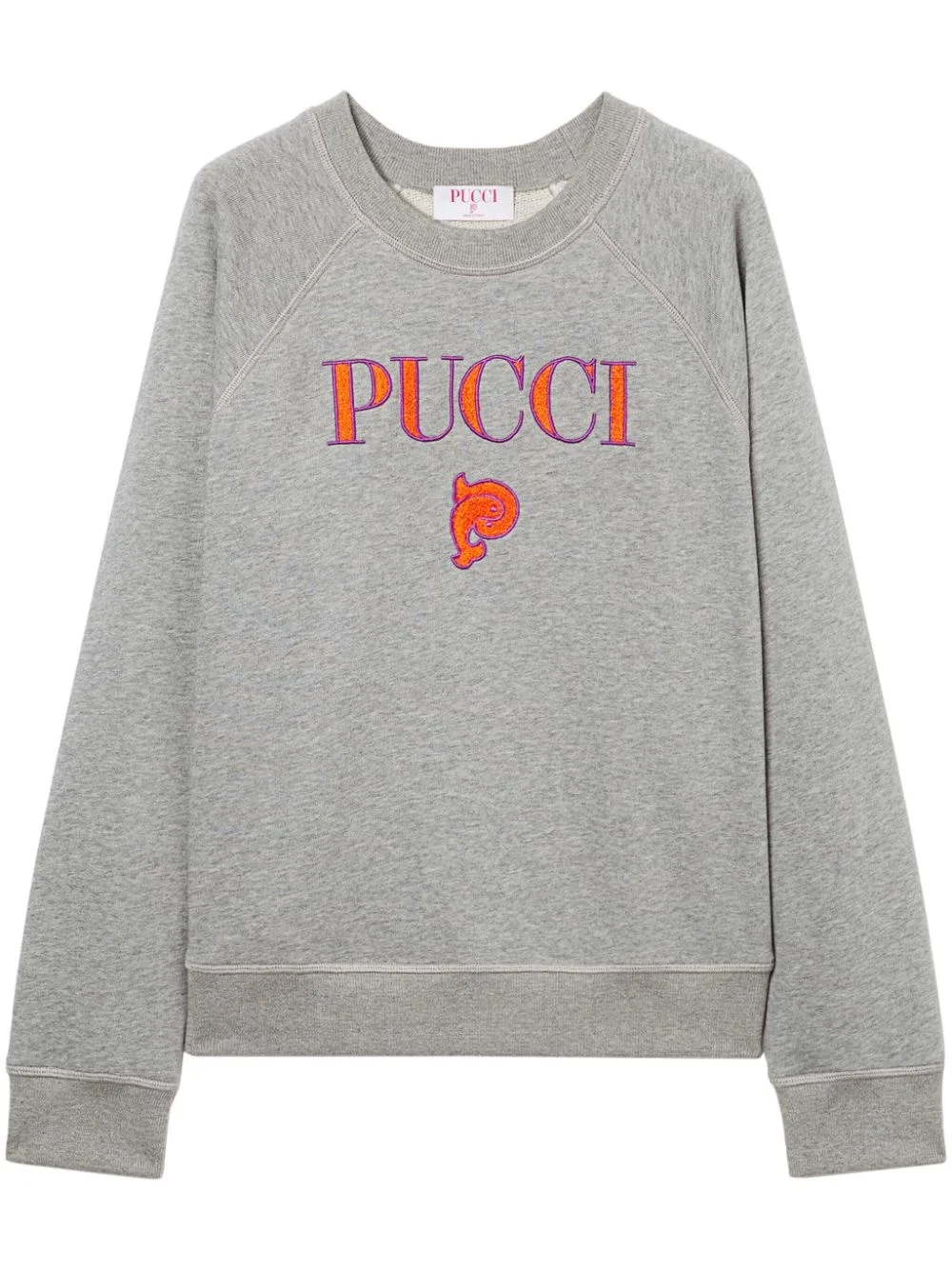 logo-embroidered cotton sweatshirt A wardrobe staple, this heather-grey PUCCI sweatshirt is made from cotton to a raglan-sleeve silhouette neatened by ribbed trims. A pop of colour is added in the form of orange and purple logo embroidery to the front. Highlights - Heather grey - Cotton - Embroidered logo to the front - Ribbed trim - Crew neck - Long raglan sleeves - Straight hem Made in Italy Composition Cotton 100%
