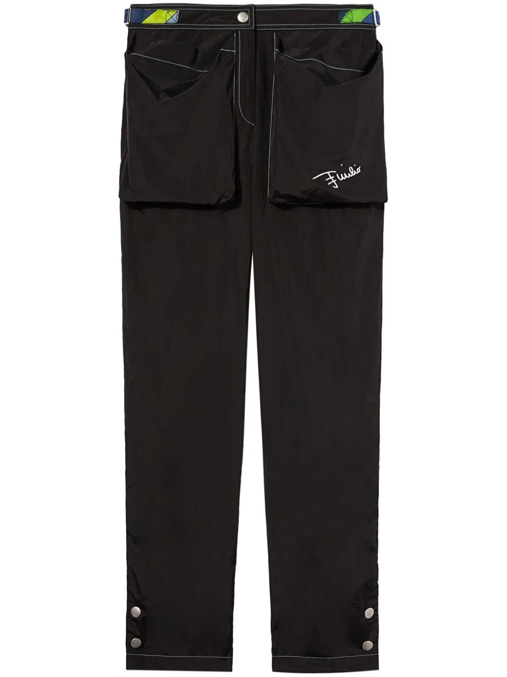 large patch-pocket straight-leg trousers Highlights - Black - High waist - Logo print to the front - Front press-stud and zip fastening - Slim cut - Two rear welt pockets - Two side pouch pockets - Contrast stitching - Slim cut Made in Italy Composition Polyamide 53%, Cotton 47%