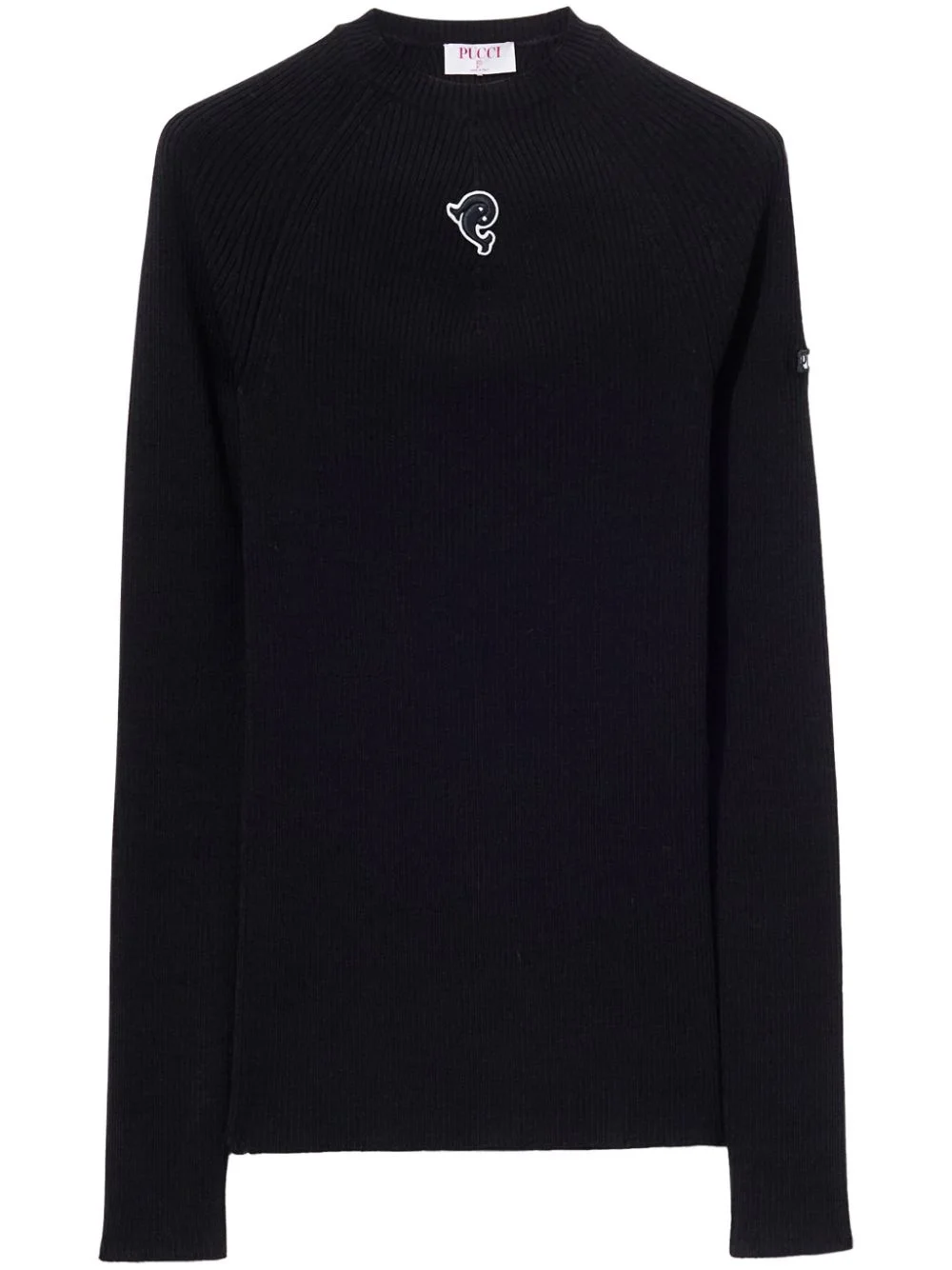 logo-patch jumper Highlights - Black - Logo patch to the front - Long raglan sleeves Made in Italy Composition Virgin Wool 58%, Nylon 35%, Elastane 7%