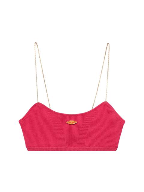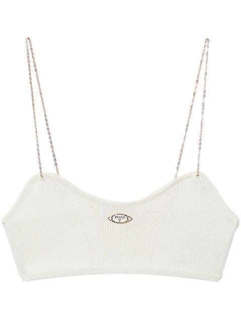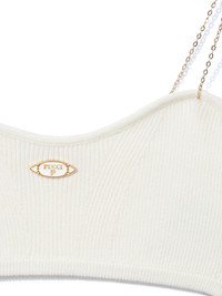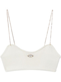 logo-plaque ribbed crop top Highlights - White - Ribbed knit - Gold-tone logo plaque - Two chain-link shoulder straps - Scoop neck - Cropped Made in Italy Composition Viscose 70%, Polyester 30%