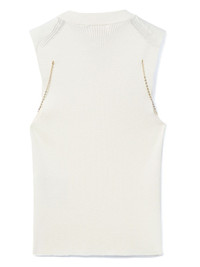logo-plaque ribbed knit top Highlights - White - Ribbed knit - Gold-tone logo plaque - Chain-link detailing - Crew neck - Sleeveless - Straight hem Made in Italy Composition Viscose 70%, Polyester 30%