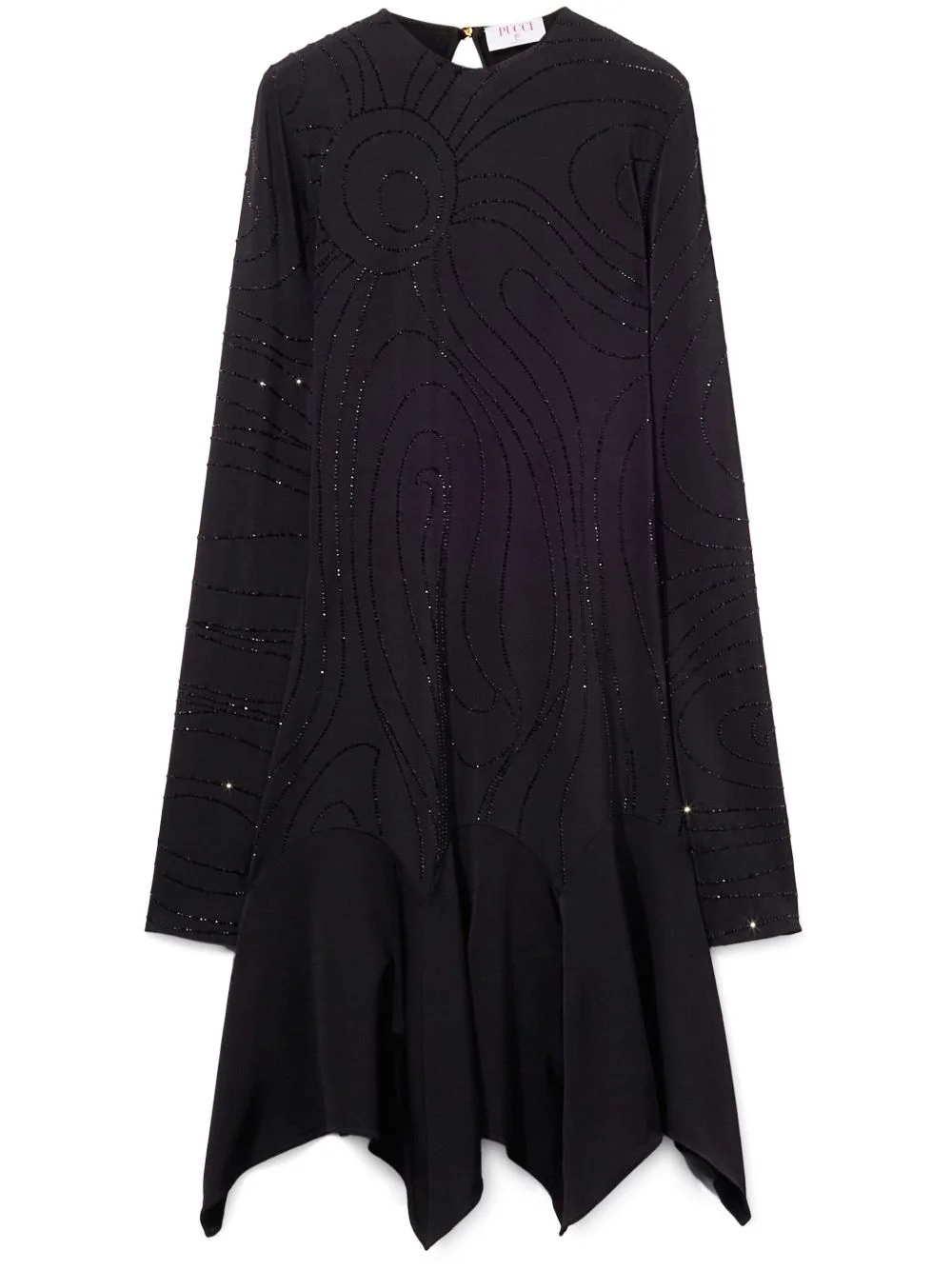 Marmo-beaded dress Highlights - Black - Rear button fastening - Round neck - Long sleeves - Handkerchief hem Made in Italy Composition Outer: Viscose 95%, Elastane 5%