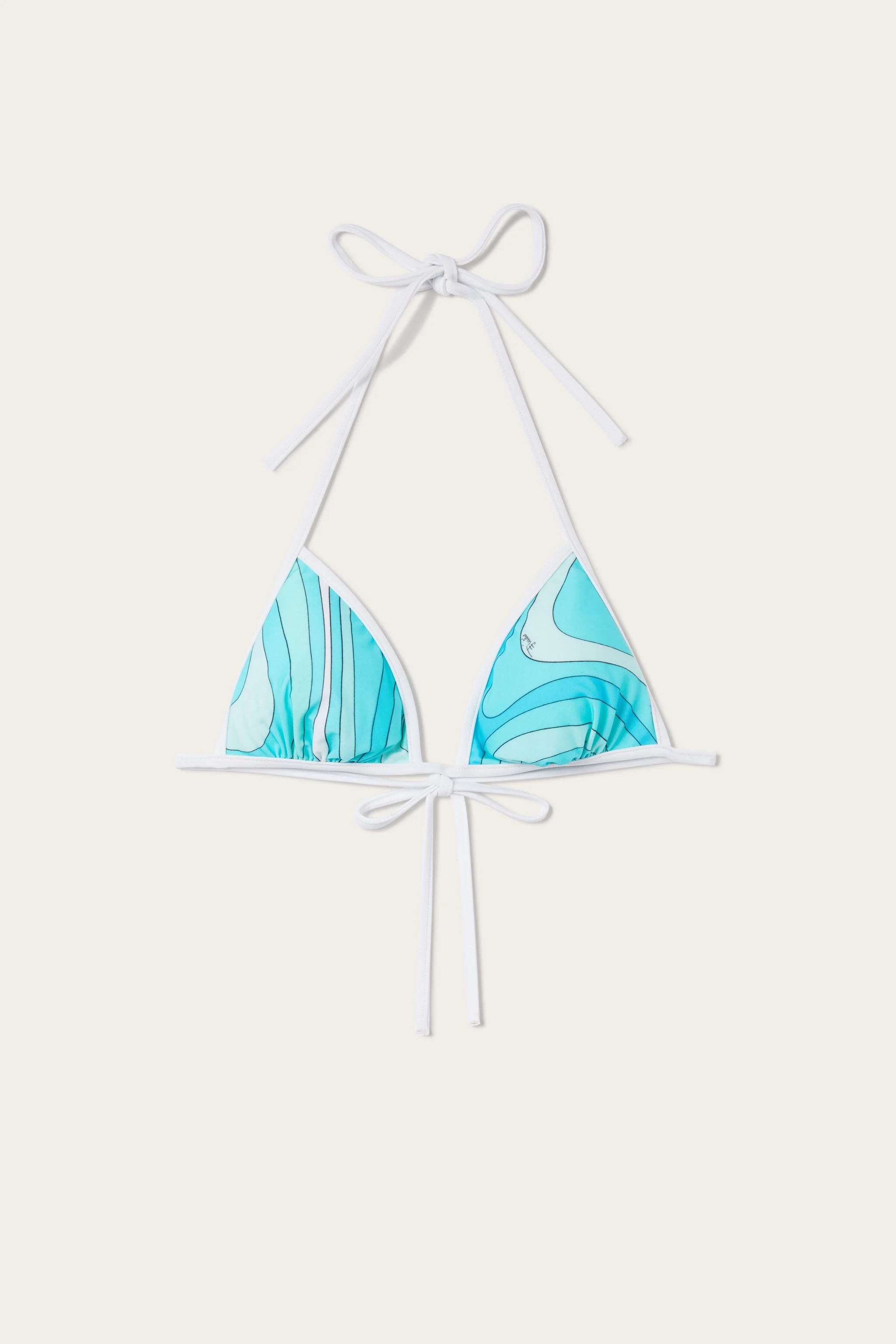 Essential and versatile, this triangle bikini top with removable cups combines style and functionality. Made from stretch Lycra with UV protection, it guarantees protection and comfort when exposed to the sun. The iconic turquoise Marmo print adds movement and an artistic touch, perfect for the beach or pool. - To offer you a unique Pucci garment, we use an all-over print that makes the product unrepeatable. Therefore, the pattern print may vary from the one displayed in the photo. - Turquoise - Stretch Lycra - Triangle style with removable cups - Adjustable tie fastening at the back of the neck and back - Hand wash - Made in Italy - ID: 5UMX715U775067