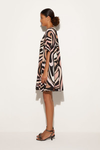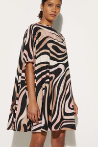 A classic revisited with a modern and sophisticated twist. This mini kaftan is the perfect combination of lightness and character, thanks to its fluid silhouette and iconic Marmo print in black and nude that enhances its appeal by adding depth and movement, making it a fresh, feminine garment full of personality.Perfect for city days or summer evenings by the sea, it is a garment that plays with sophistication and comfort. - To offer you a unique Pucci garment, we use an all-over print that makes the product unrepeatable. Therefore, the pattern print may vary from the one displayed in the photo. - Black and nude - 100% Silk - Flowing, lightweight silhouette - Marmo print - Gently dry clean. - Made in Italy. - ID: 5HRL045H763001 - The model is 175 cm tall and wears a 38 italian size