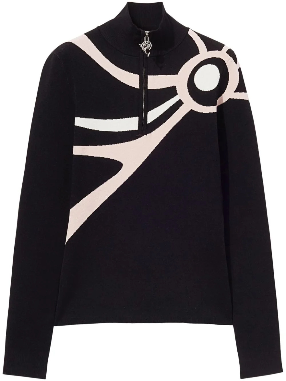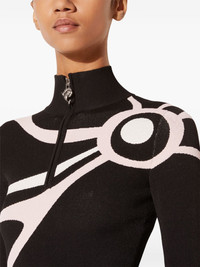 Marmo-jacquard top Highlights - Black - Half front zip fastening - Abstract pattern print - Stand-up collar Made in Italy Composition Viscose 77%, Polyester 23%