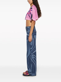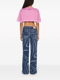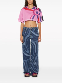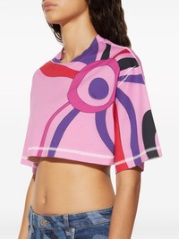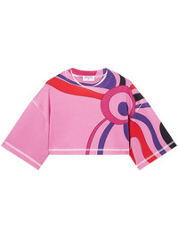Marmo-print cotton crop top PUCCI's world is one of bold colours and patterns – and this rose-pink T-shirt is proof. Made from cotton jersey to a cropped silhouette, it's saturated with the brand's signature Marmo print, characterised by undulating lines. It's framed by short wide sleeves. Highlights - Rose pink/multicolour - Cotton - Jersey texture - Abstract pattern print - Contrast stitching - Crew neck - Short sleeves - Straight hem - Cropped Made in Italy Composition Cotton 100%